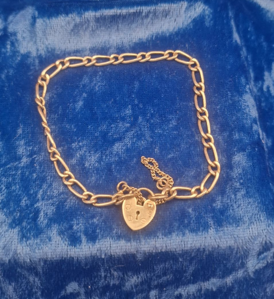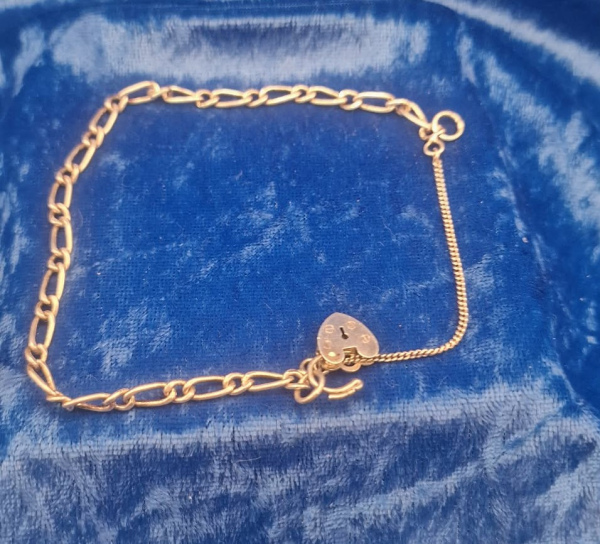 Bracelet 7" charm with safety chain and heart lock