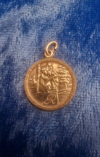 St Christopher hallmarked birmingham maker AP Year 1983 Engraved R on the front